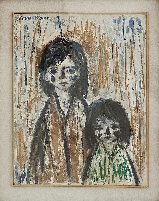 Xavier Bueno Olio su tela 50x40 Due ragazze 1954 Autentica Remo Bianco