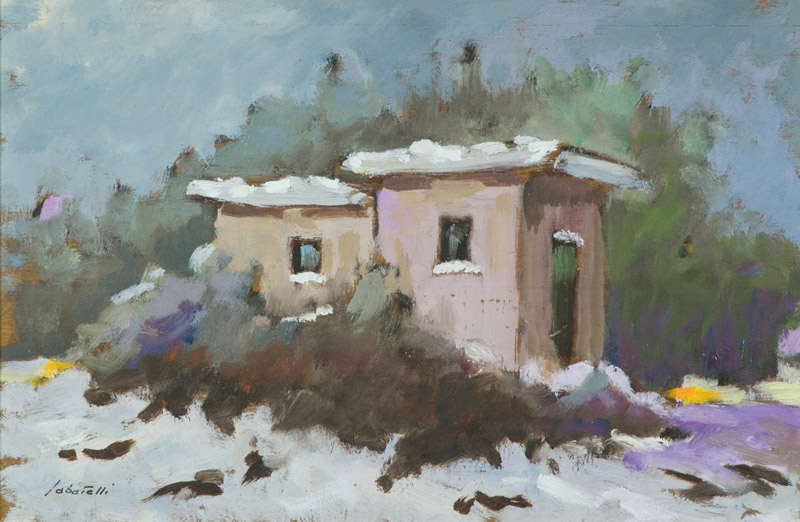 Walter Sabatelli Paesaggio Olio su tavola, cm. 20x30 Firmato in basso a sinistra. Sul verso: scritto di Autenticità del figlio, con timbro dell'Archivio.