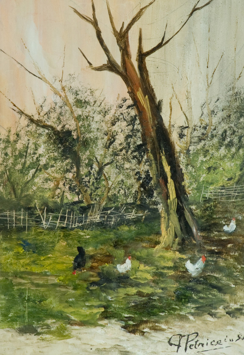 Anonimo Polli Olio su cartone, cm. 25x17 Firma illeggibile in basso a destra.