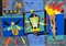 Ugo Nespolo Luci e bagliori Acrilici su legno intarziato, cm. 50x70 Firmato...