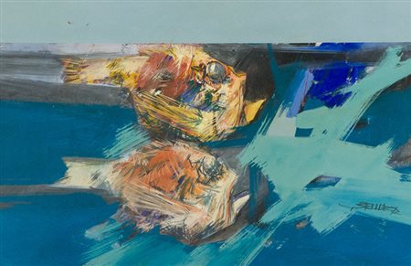 Giulio Belluz Pesci, 1972 Tecnica mista su tela, cm. 50x75 La tela presenta...