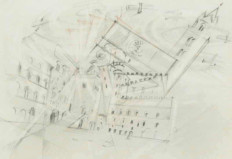 Uberto Bonetti Veduta aereo futurista Lapis e matita su carta, cm. 20x28,5...