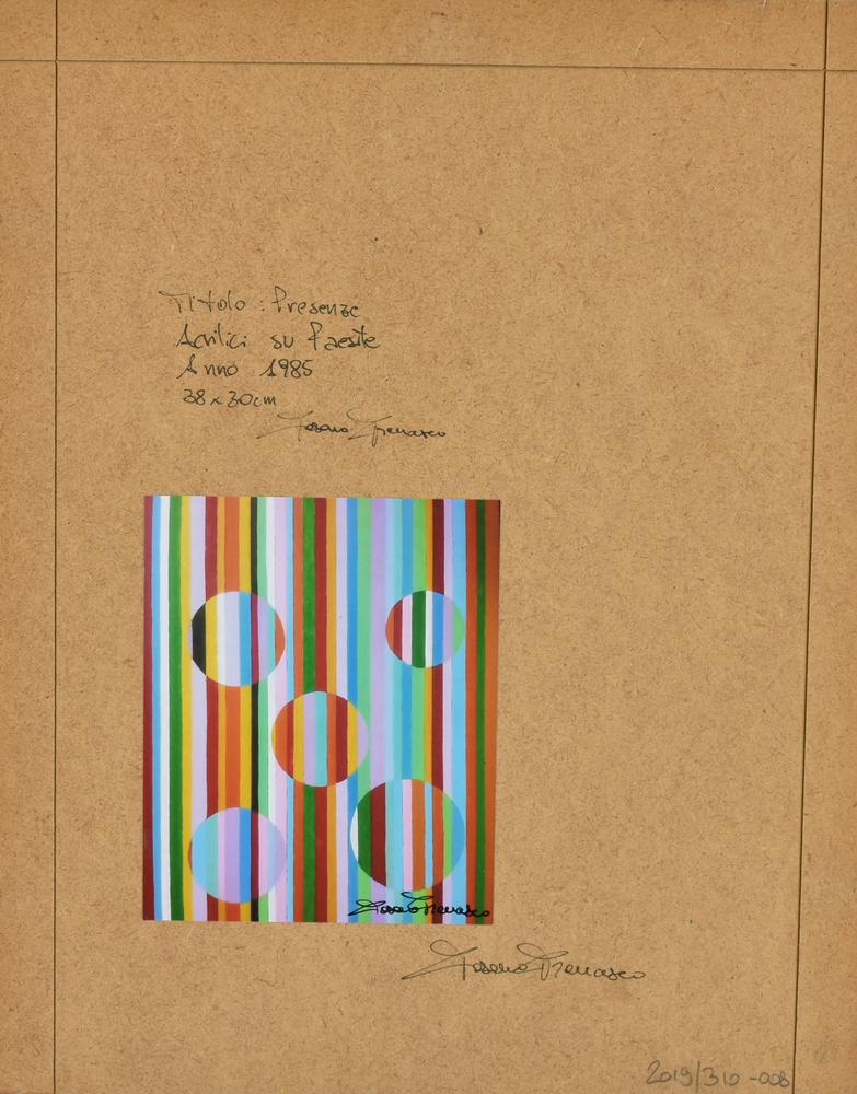 Francesco Fasano PRESENZE acrilico su faesite, cm 38x30 sul retro: firma,...