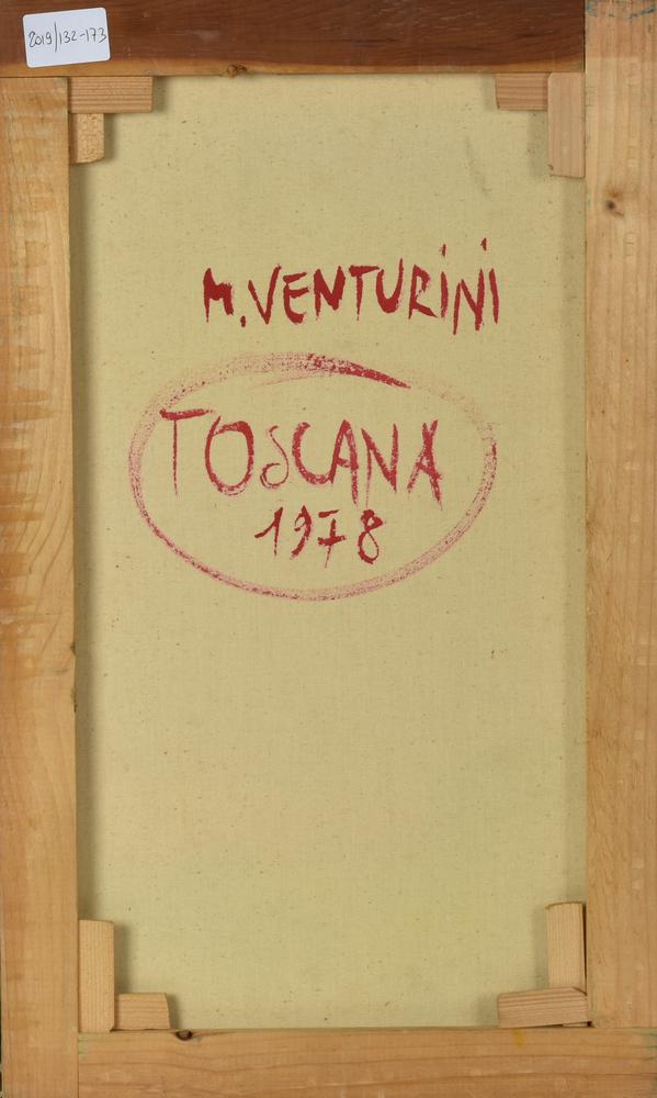 M. Venturini TOSCANA olio su tela, cm 50x30 firma sul retro: firma, titolo e...