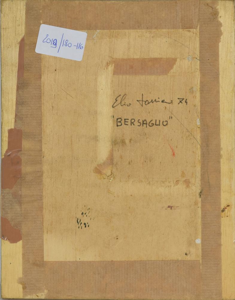 Elio Torriero BERSAGLIO olio su tavola, cm 24x18 firma sul retro: firma,...