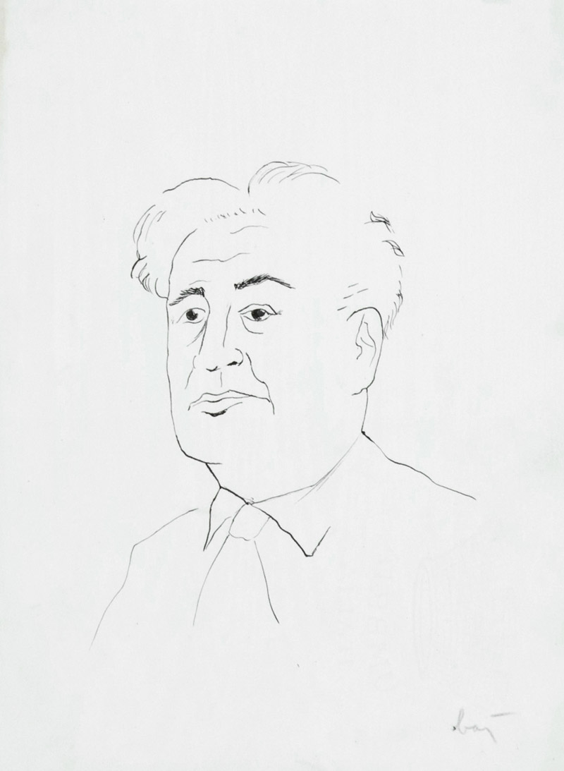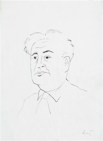 Enrico Baj Ritratto di Carlo E. Accetti, 1958 China su carta, cm. 26x19 La carta presenta lievi imperfezioni dovute al tempo. Firmato in basso a destra. Autentica dell'Artista su foto.
