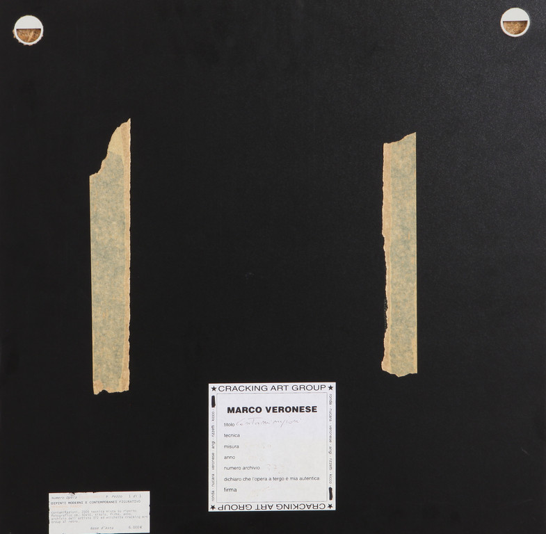 firmato datato e titolato sull'etichetta (parzialmente sbiadita) di Cracking Art Group