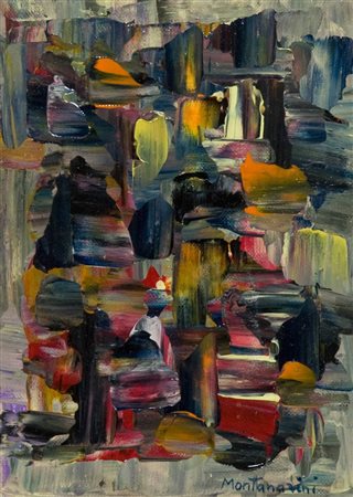 Luigi Montanarini Composizione, 1980 c.a. Olio su cartone telato, cm. 20x15 Firmato in basso a destra. Autentica di Jorise Tarabella Montanarini su foto.