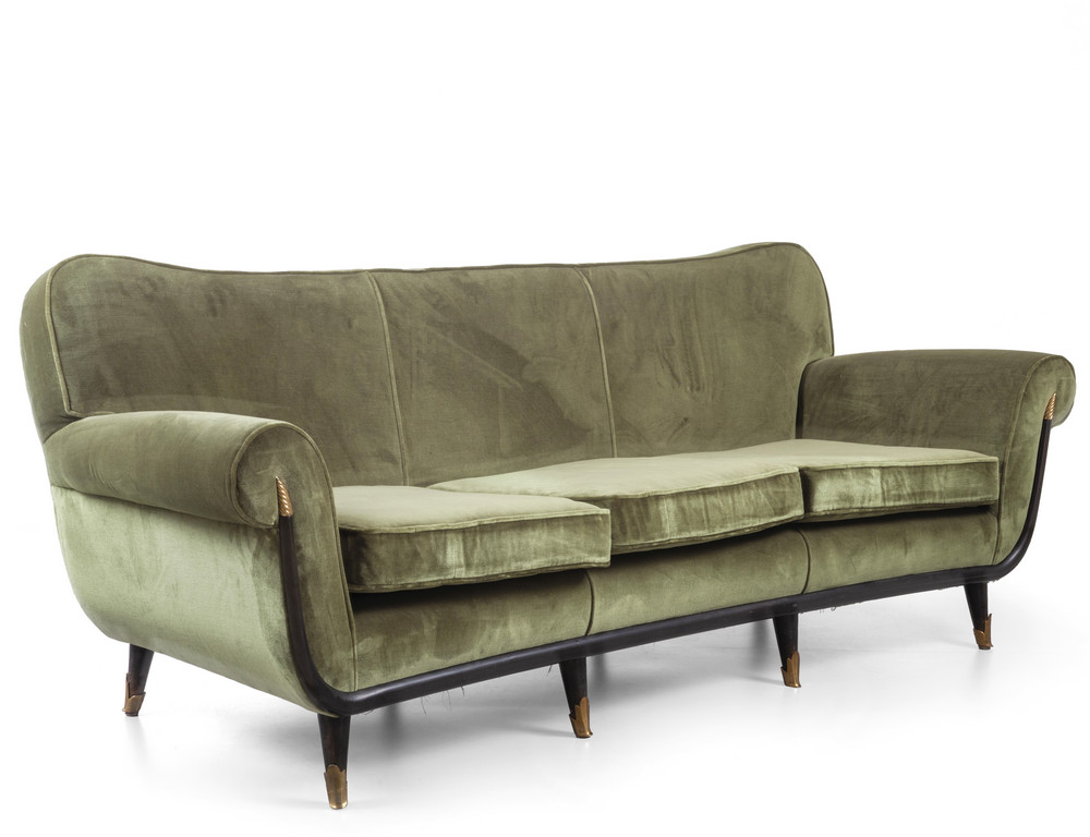 Struttura in legno gambe e applicazioni di legno ebanizzato ottone rivestimento in velluto.