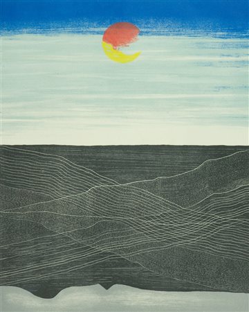 Max Ernst Paesaggio Litografia su carta, cm. 70x50, es. 5/99 La carta presenta lievi fioriture. Firma in basso a destra, tiratura in basso a sinistra. Sul verso: timbro ed etichetta di provenienza.