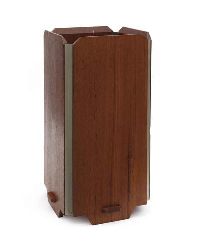 Legno di teak tinto all'anilina alluminio vaschetta di lamierino verniciato.