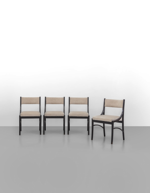Legno laccato sedile e schienale imbottiti rivestiti in velluto.
