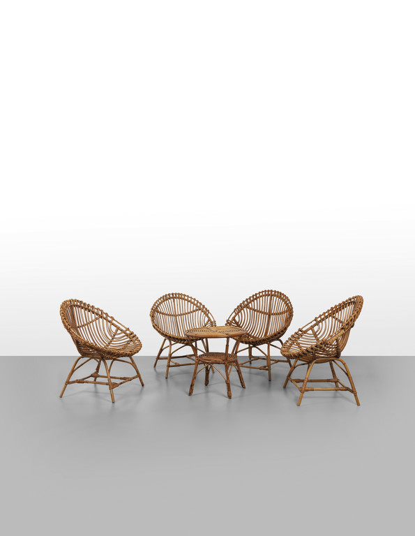 QUATTRO POLTRONCINE E UN TAVOLINO anni '60.