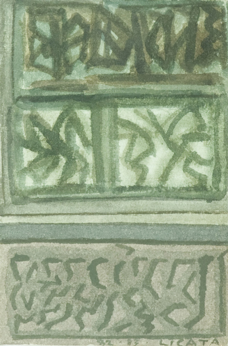 Riccardo Licata Senza titolo, 1982 - 1983 Tecnica mista su carta a mano, cm. 13x9 Firma e data in basso a sinistra. Bibliografia: Giovanni Granzotti, Dino Marangon, "Licata e i suoi diari", Stamperia dell'Arancio edizioni, pag. 23.