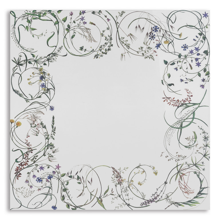 Cristallo serigrafato con motivi di erbe campestri e registro argentato.