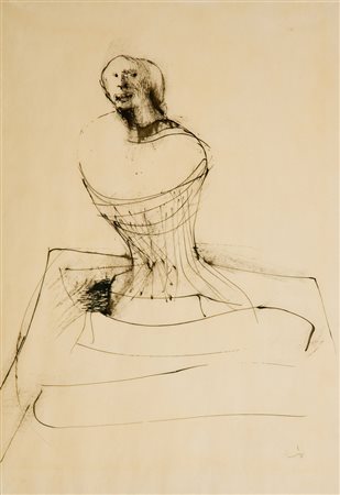 Lotto 890 | Giuliano Vangi Figura China su carta, cm. 73x50 Firmato in basso a destra....