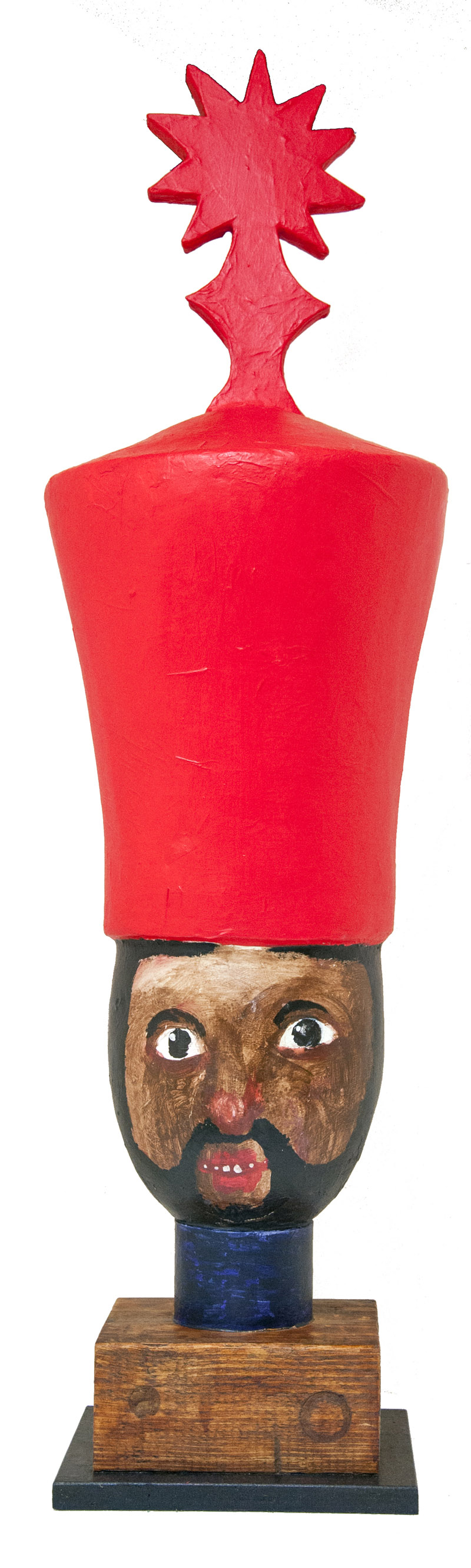 Antonio Possenti Lotto unico di tre Opere - "Melchiorre", Scultura in cartapesta dipinta su base di legno, cm. 115x35x35; - "Baldassarre", Scultura in cartapesta dipinta su base di legno, cm. 98x60x31; - "Gaspare", Scultura in cartapesta dipinta su base di legno, cm. 83x36x32. Autentica dell'Artista su foto.