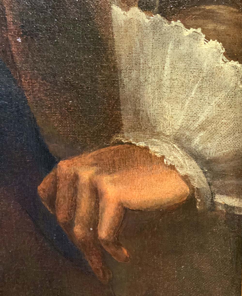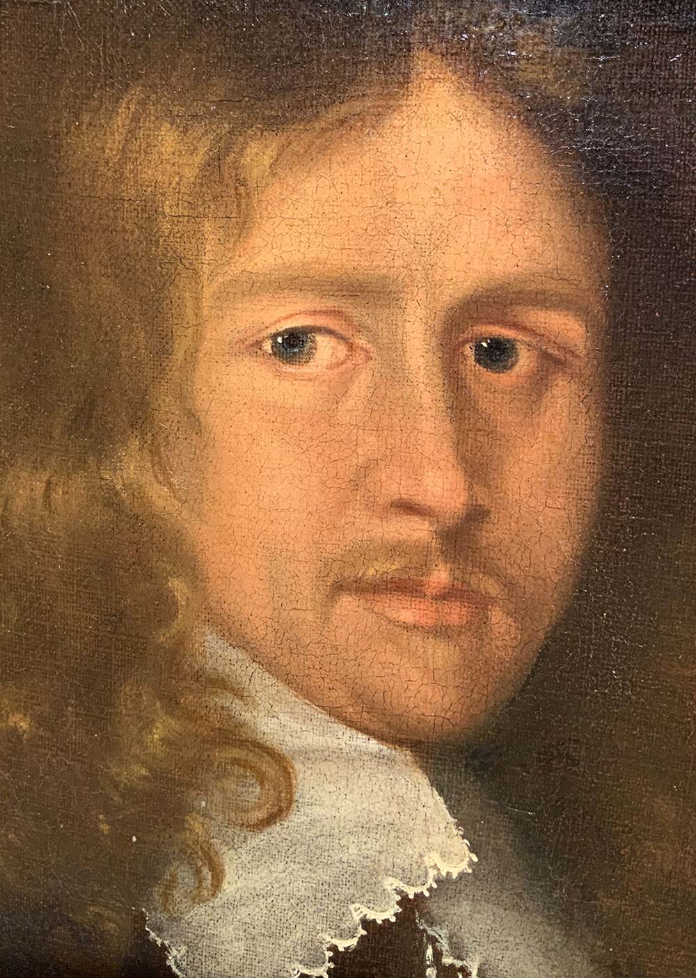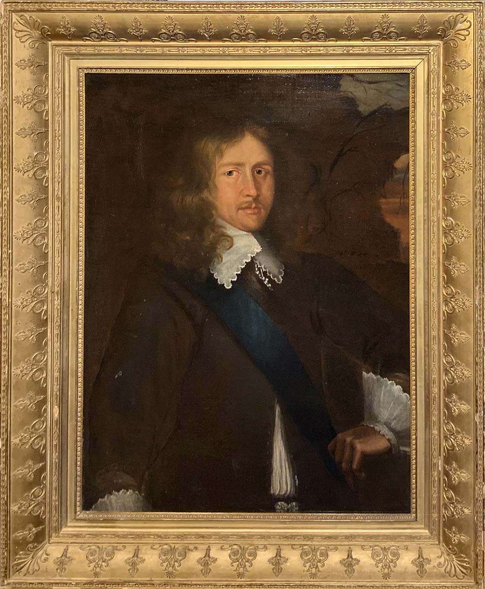 Pittore olandese del XVII secolo. Ritratto di nobiluomo con fascia azzurra. 85x64, olio su tela, con cornice 105x84.