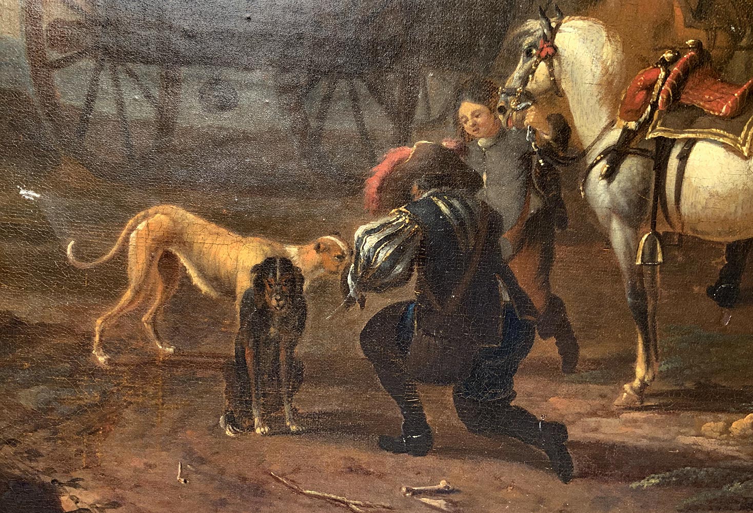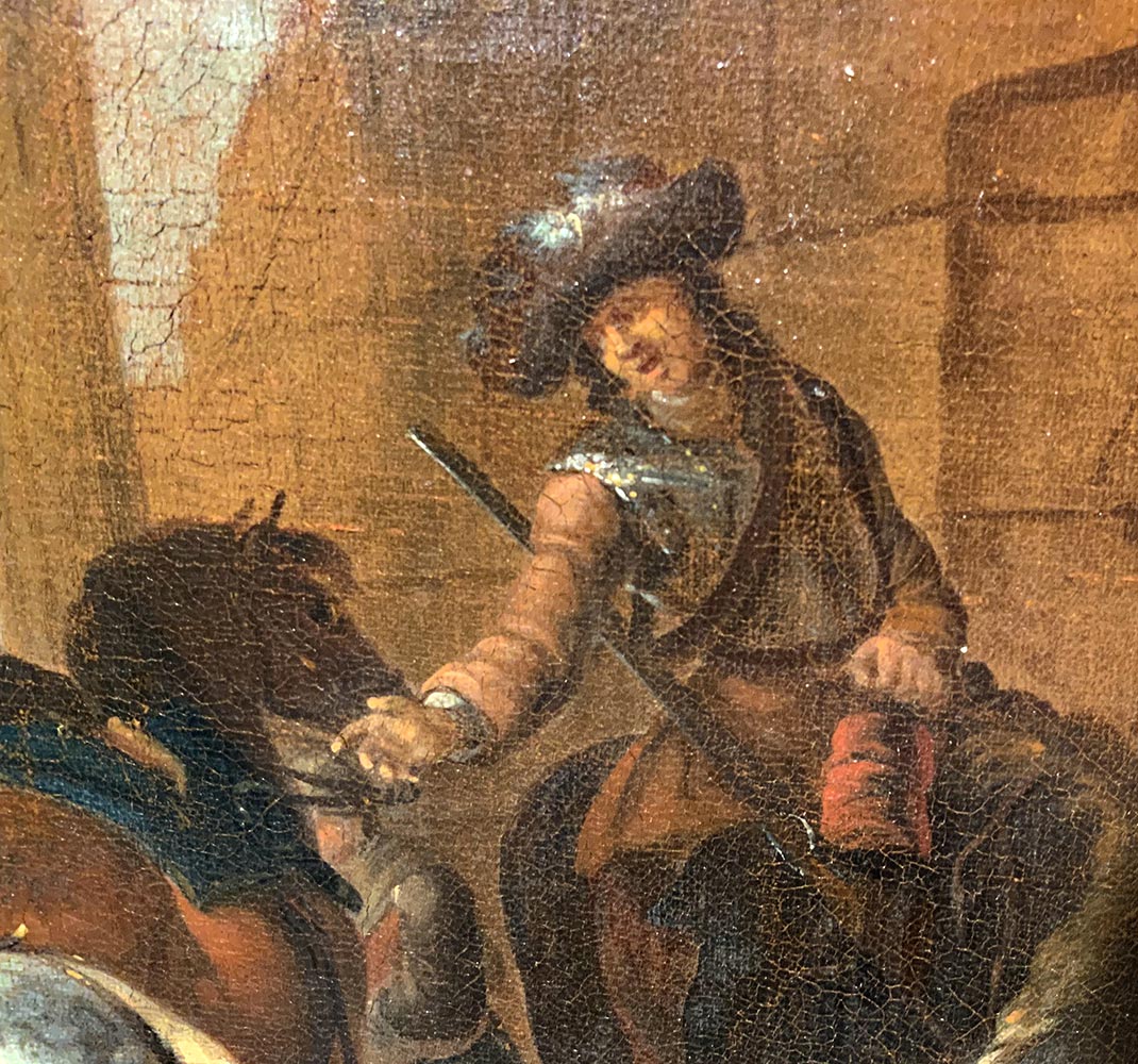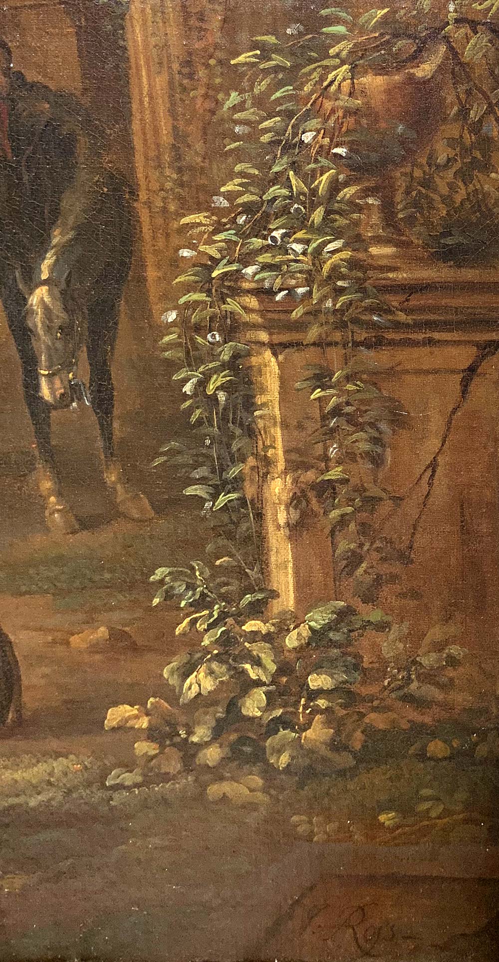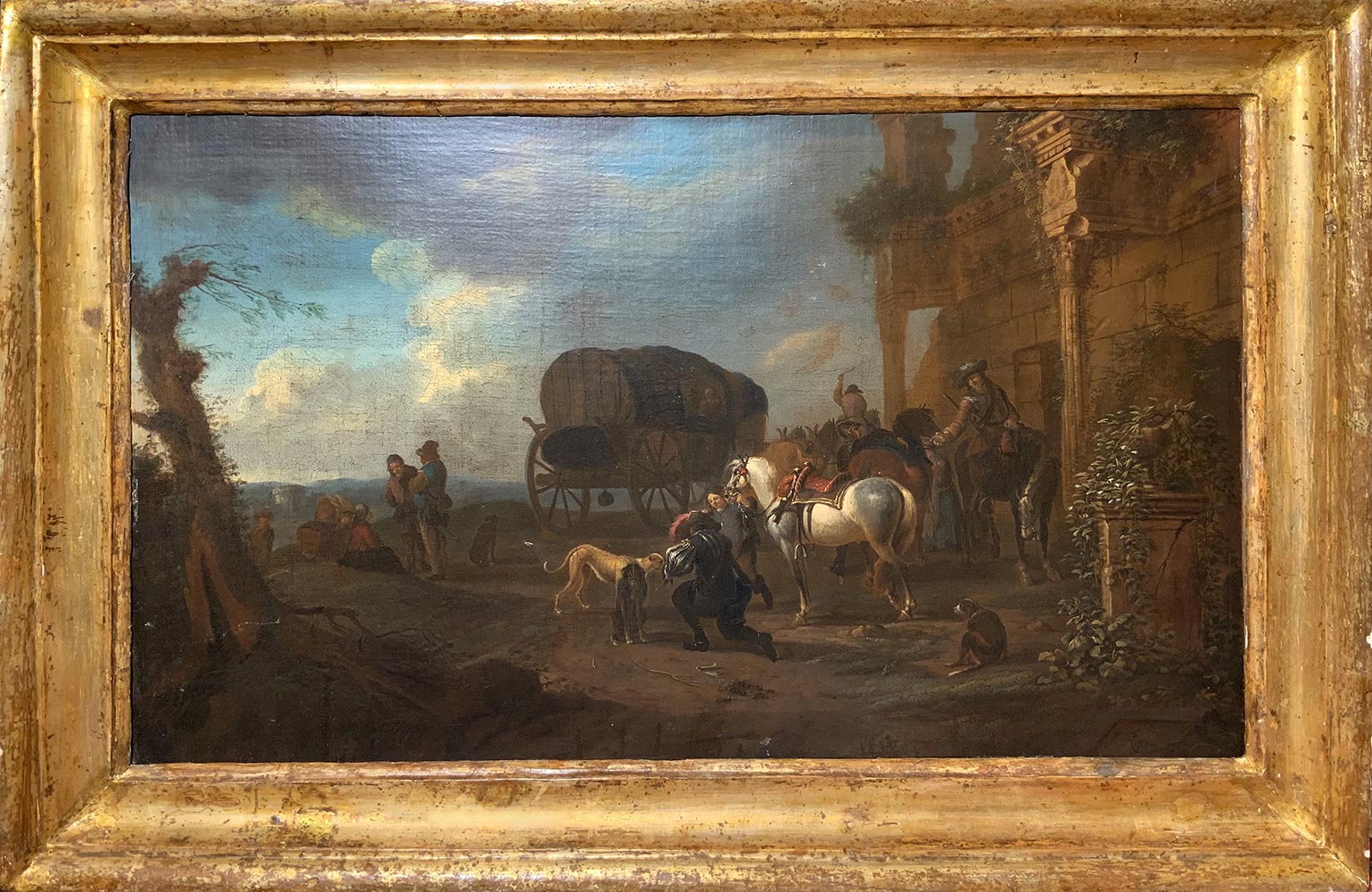 Jakopo Roos, detto “Rosa da Napoli” (Roma 1682, Napoli 1730). Stazione di posta,58x96, olio su tela, in cornice 74x112, firmato e datato 1720 in basso a destra.Sul retro timbro "Ministerio de educate e cultura, museo National de las Artes, Rio de Janeiro".
