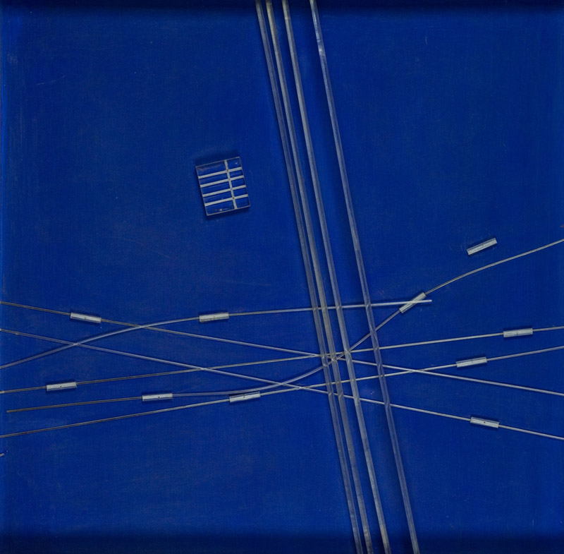 Carlo Cioni Senza titolo, 1996 Assemblaggio di legno e materiali plastici e neon, cm. 77x63x7 Sul verso: firma e data; Sigla "Bruno Giraldi".