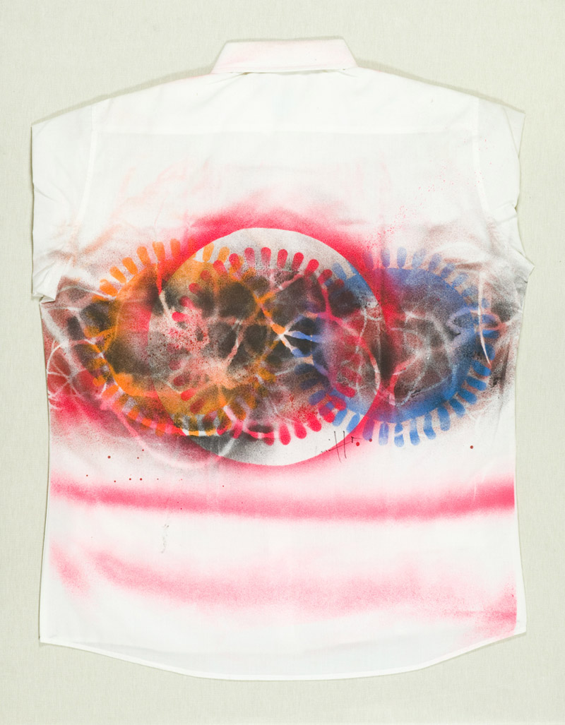 Roberto Crippa Senza titolo Tecnica mista su camicia applicata su tela, cm. 89x70, in teca di plexiglas Firmato al centro.