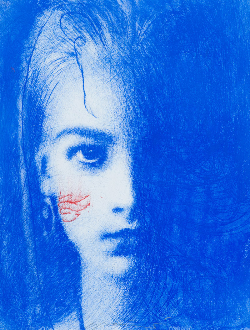 Omar Galliani Blù Pastelli policromi su cartoncino, cm. 45x35 Firmato in basso al centro. Sul verso: firma e titolo. Autentica dell'Artista su foto.