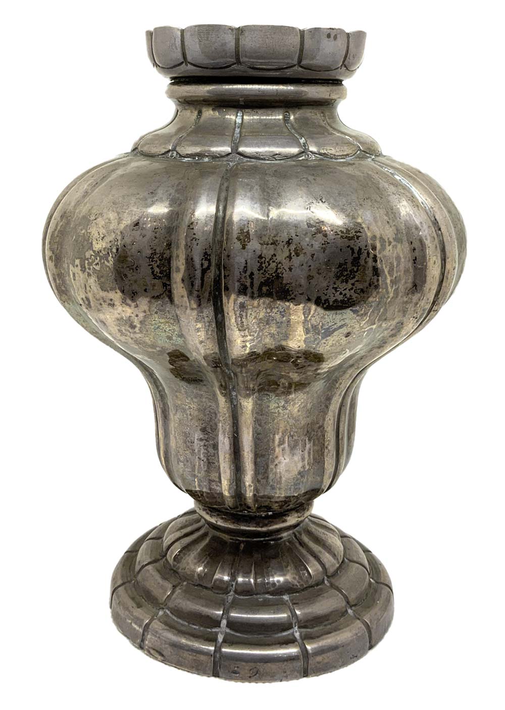 Vaso in argento ribattuto a mano. Probabilmente Sicilia, XVII secolo. Punzoni...