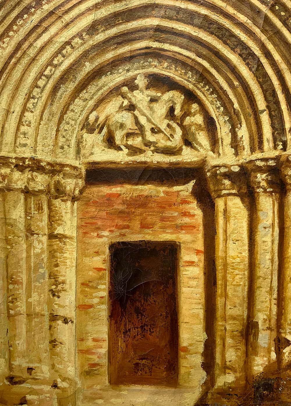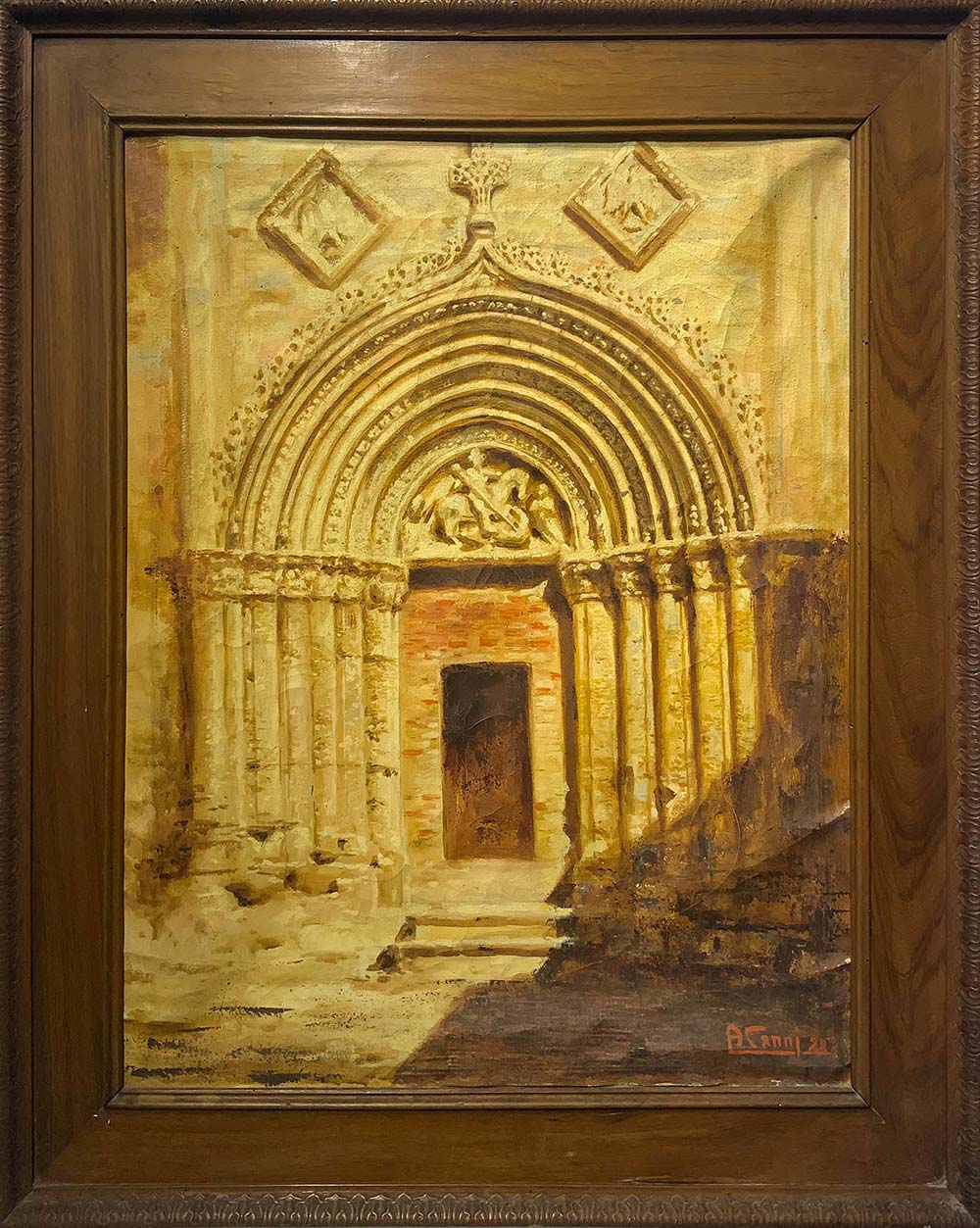 Antonio Canni (Ragusa,1895- 1980, Ragusa). Portale San Giorgio a Ragusa Ibla. 74x59, olio su tela. Firmato in basso a destra.