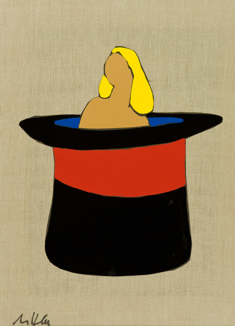 Marco Lodola Donna nel cappello Collage, carta e smalti su tela grezza, cm....