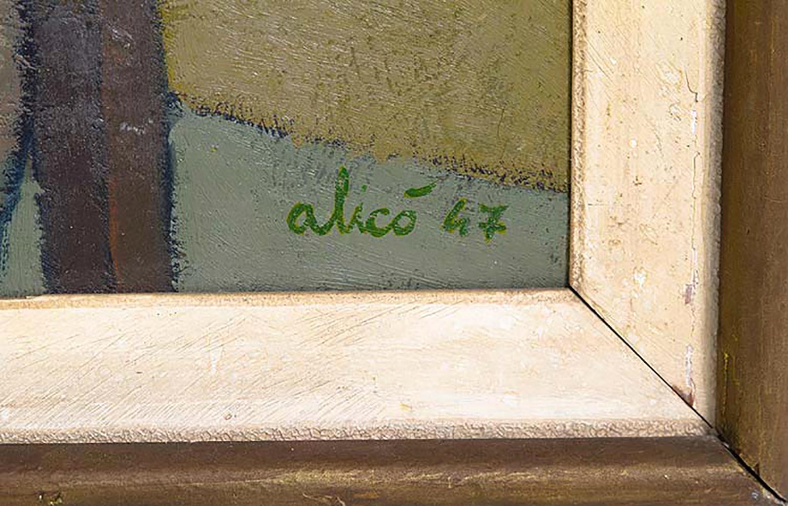 Alicò Giovanni (1906-1971). Nudo di donna (1947). 102x79, Olio su compensato. Firmato e datato in basso a destra.