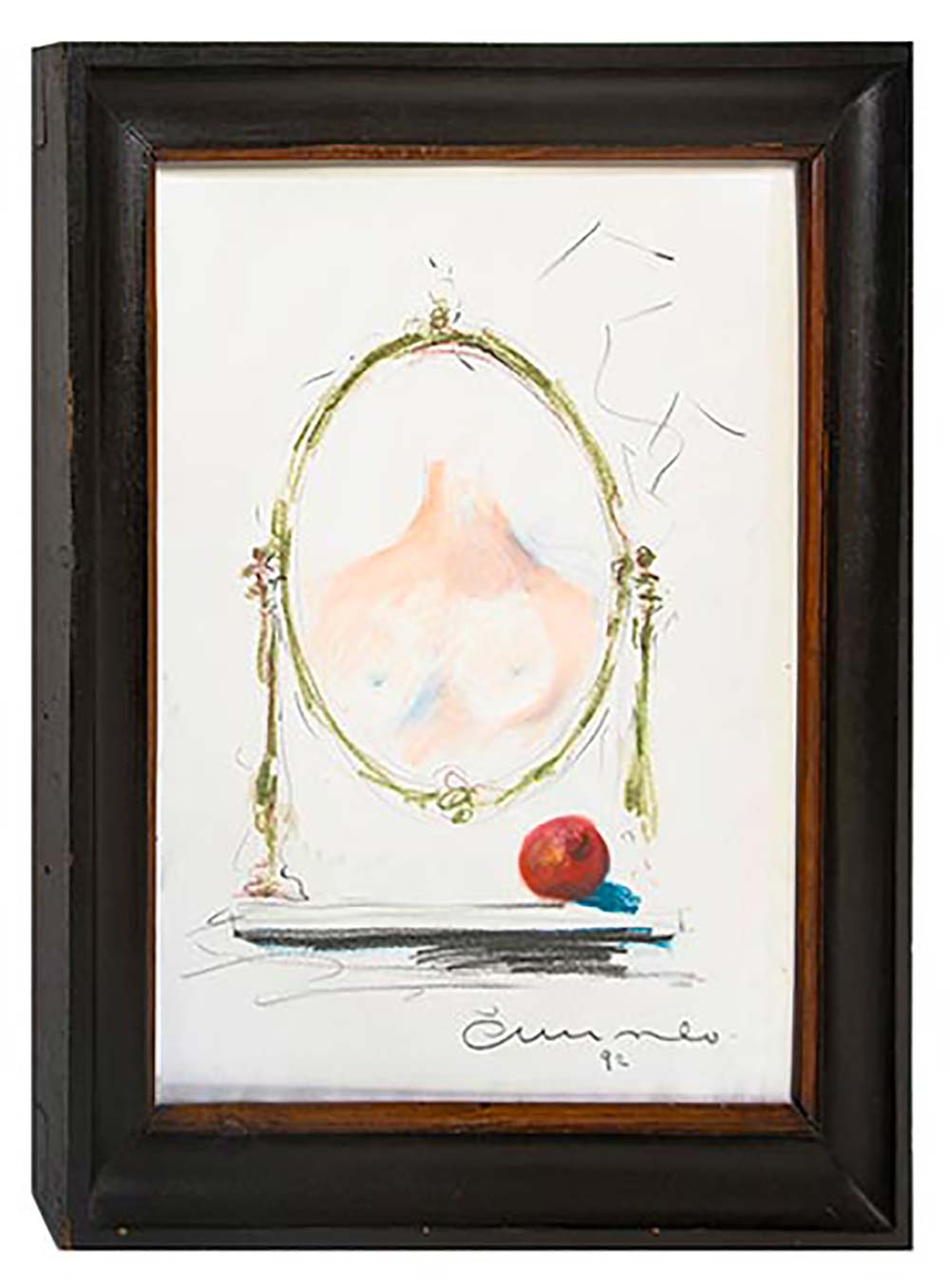 Dino Cunsolo (1944). Nudo allo specchio. 49x34, Tecnica mista su carta. Firmato e datato in basso a destra.