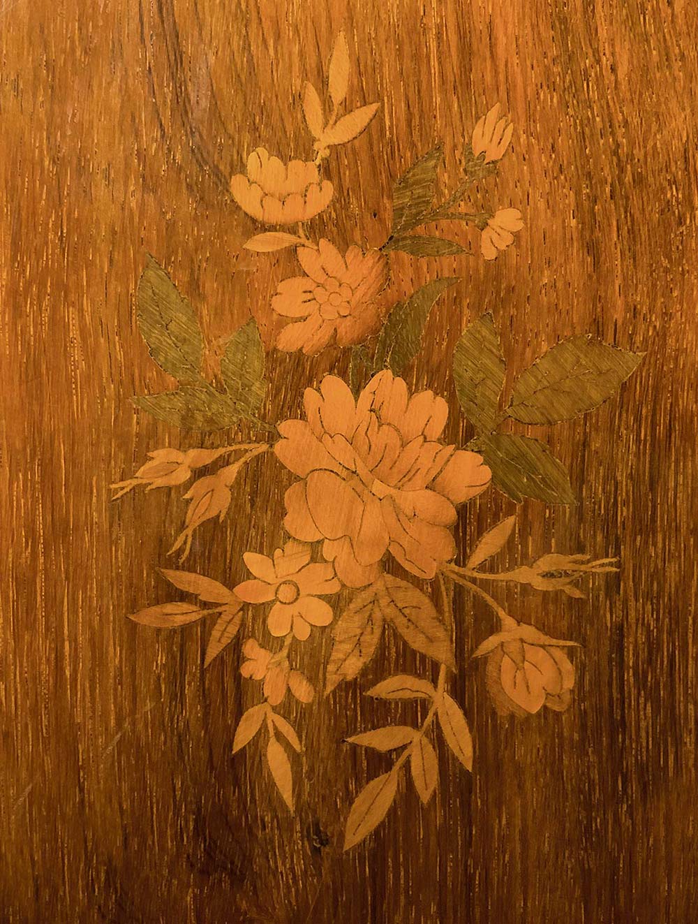 Étagère, XIX secolo, Sicilia. In legno di noce con marmo al piano ed intarsi floreali nel corpo centrale, fresatura in legni chiari. H cm 108x120x45.