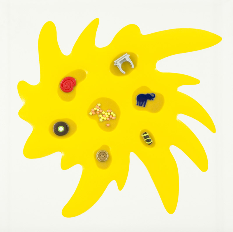 Renzo Nucara Bang 10 - 37, 2011 Legno, carta, colore serigrafico, resine ed oggetti, cm. 50x50 in teca di plexiglas Sul verso: firma, titolo e numero d'Archivio. Autentica dell'Artista con foto e Archivio n° 0114332.