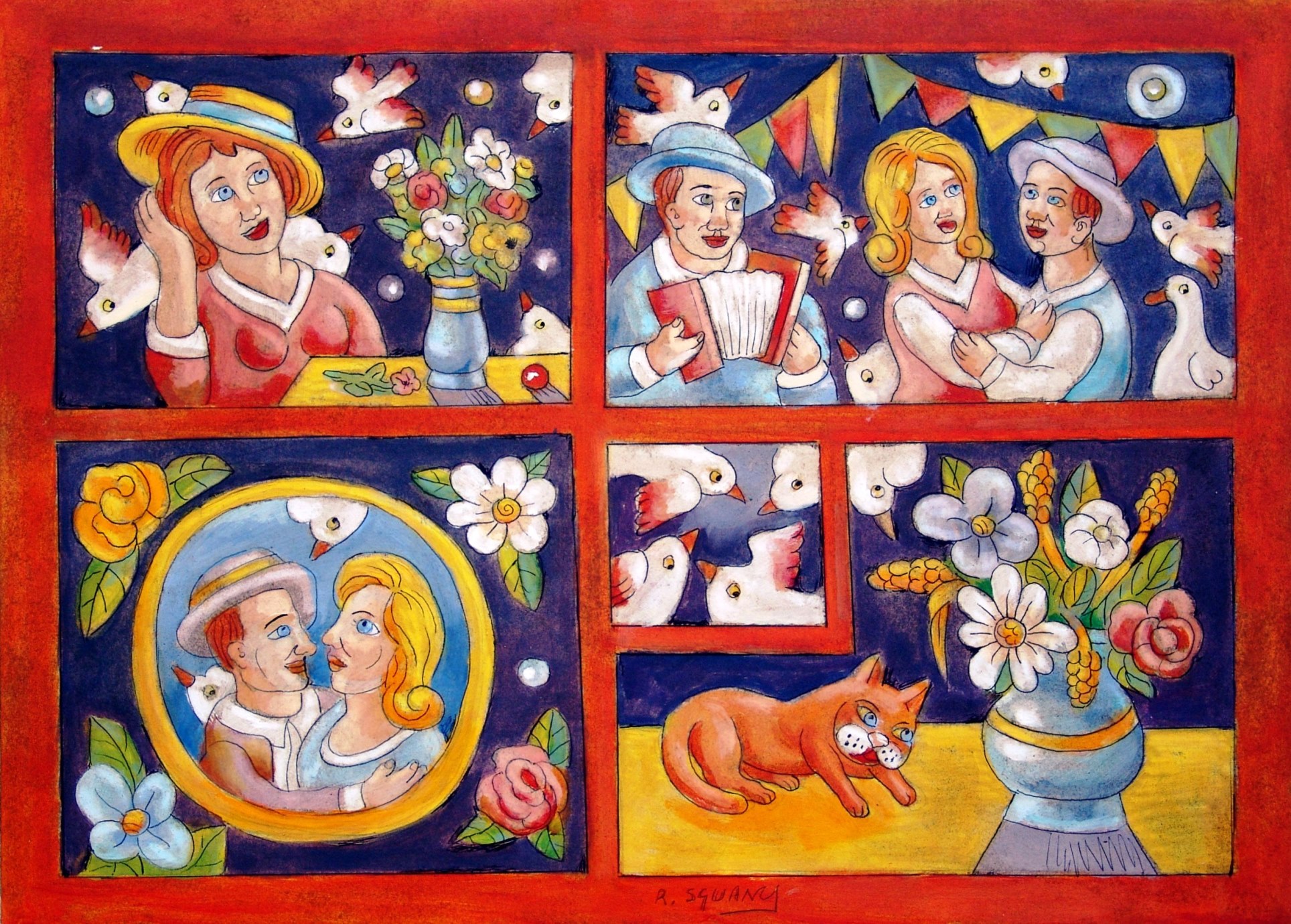 firma dell’artista in basso al centro e sul retro