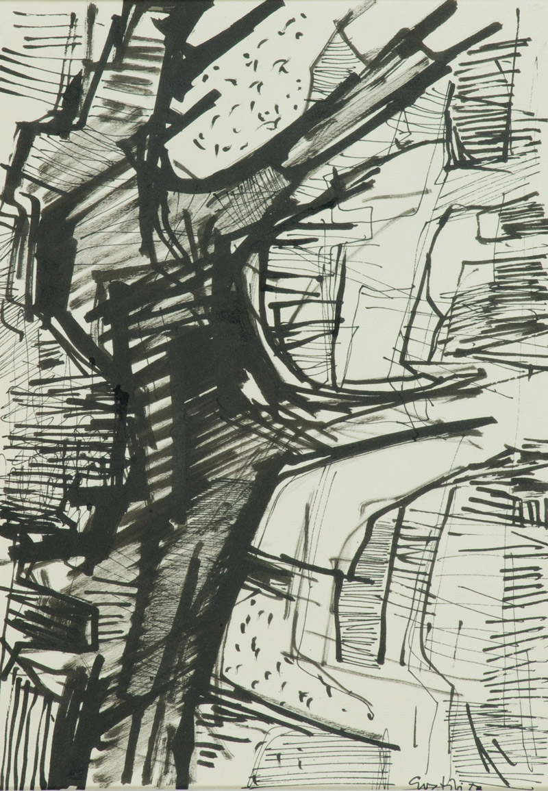 Gualtiero Nativi Studio, 1959 China su carta, cm. 35,2x25 Firma e data in basso a destra. Sul verso: timbro Archivio Gualtiero Nativi e numero d'Archivio. Esposizione: Castello dei Vicari/Lari, 31 Gennaio - 28 Febbraio, 2011, pubblicato sul catalogo della mostra, con Introduzione di Giuliano Nozzoli, "Gualtiero Nativi, aristocrazia di segno, forma e colore", pag. 21