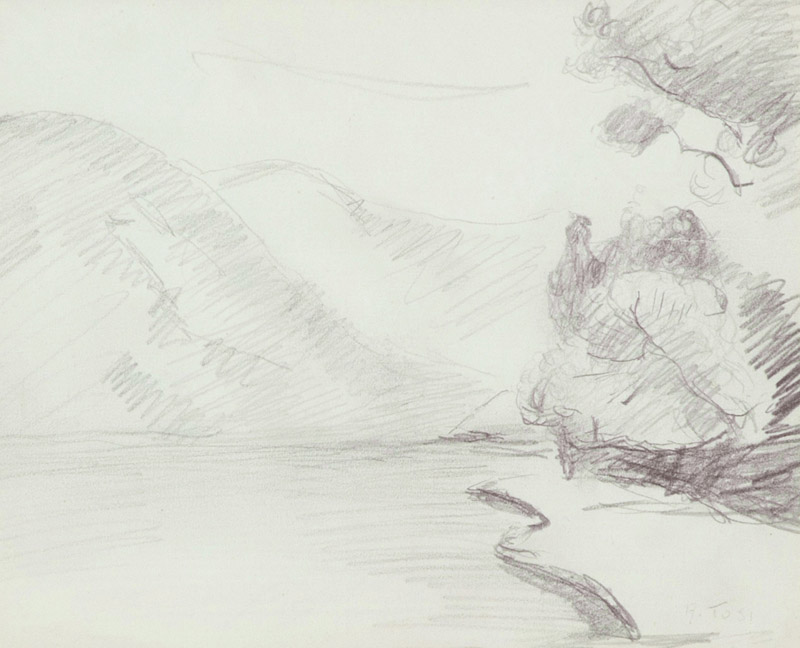 Arturo Tosi Paesaggio Lapis su carta, cm. 21x23,5 Firmato in basso a destra. Scritto di Autenticità e provenienza del nipote ArturoTosi su foto. Certificato di provenienza "Galleria Scultur Art", Bs, su foto.