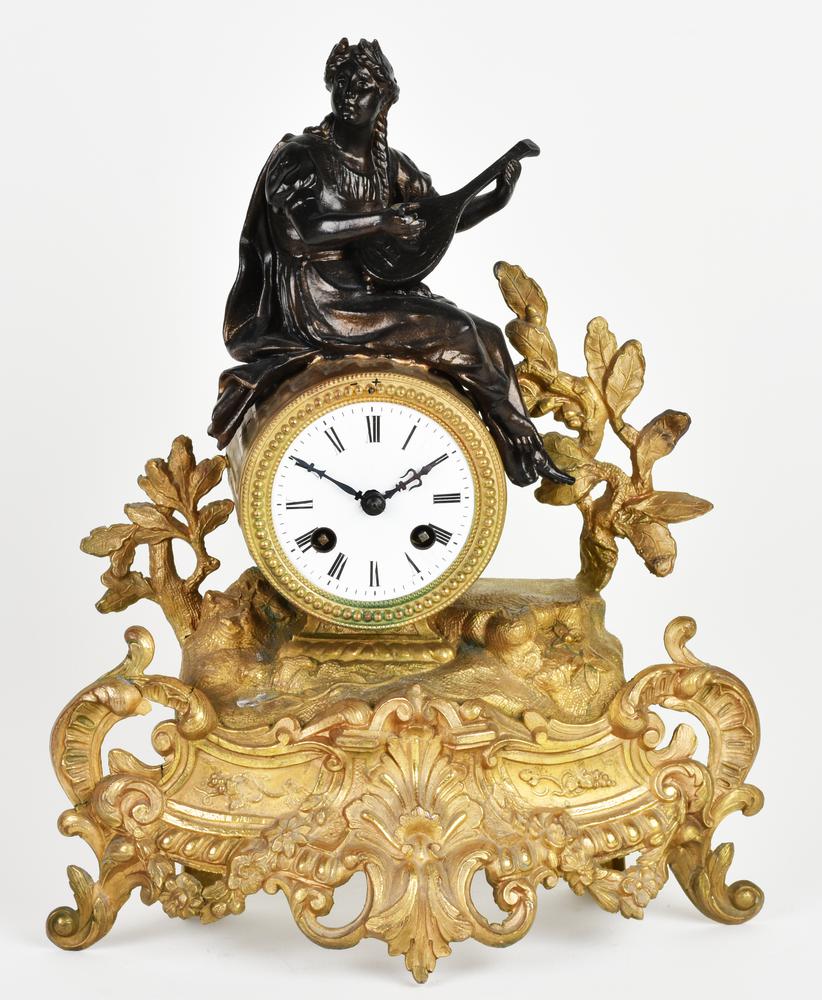 Lotto 6 | OROLOGIO SOPRAMMOBILE in metallo dorato sormontato da figura di musa con...