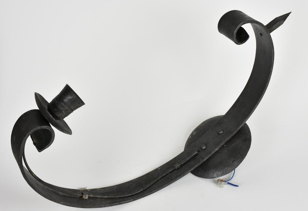 BRACCIO IN FERRO BATTUTO modellato a voluta ad una luce h cm 55