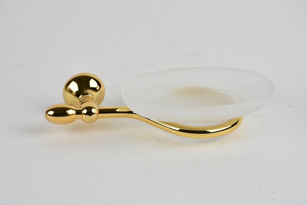 PORTA SAPONE A MURO in metallo dorato e vetro opaco cm 20
