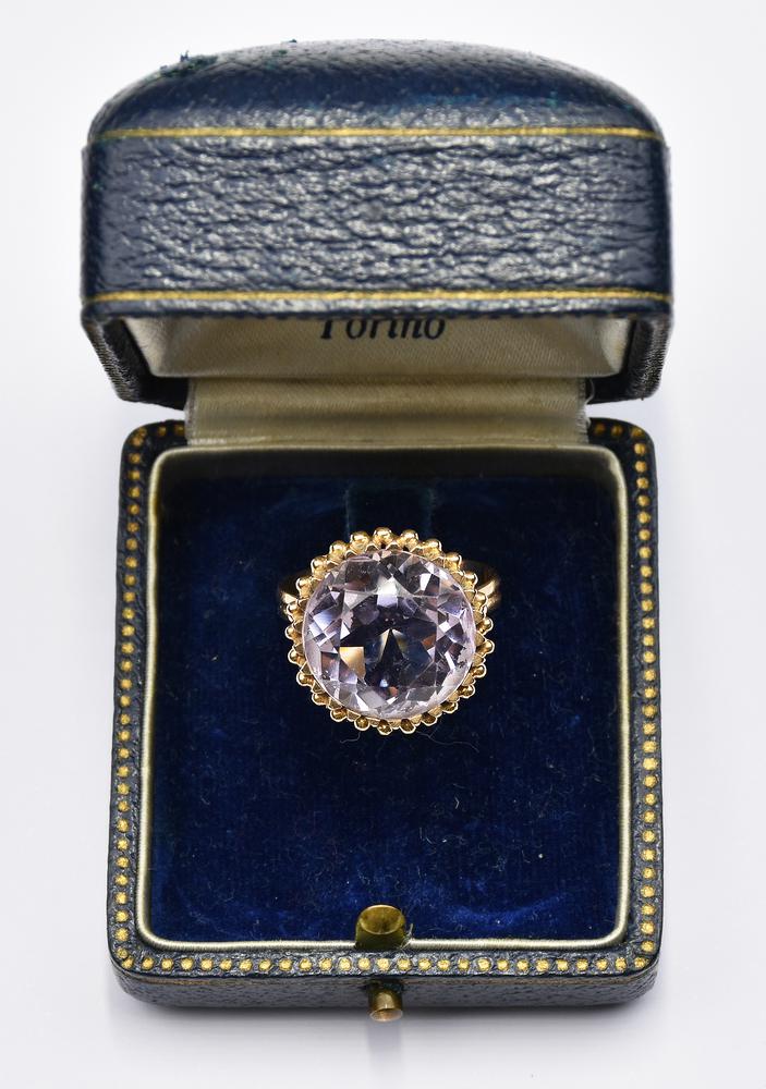 ANELLO IN ORO GIALLO 18 K CON ACQUAMARINA Italia, anni Cinquanta misura 17,5...