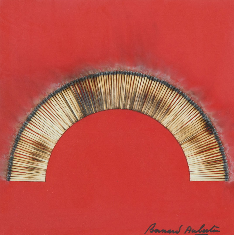 Bernard Aubertin Dessin de feu Fiammiferi bruciati su tavola, cm. 30x30 Firmato in basso a destra. Sul verso: Timbro "Galleria d'Arte Rosemberg", Milano; Autentica dell'Artista su foto.