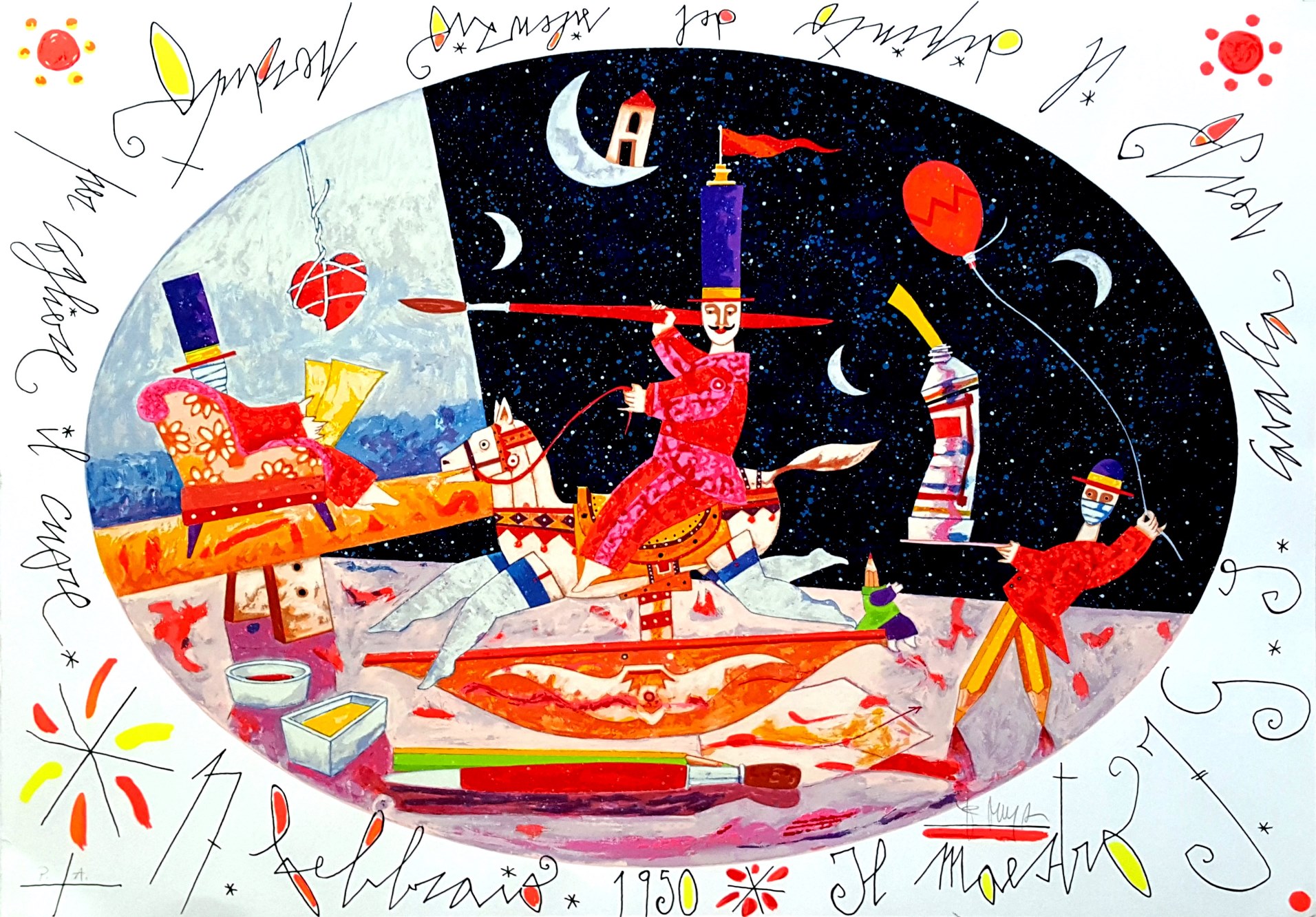 "Il maestro F. G. J. cavalca verso il dipinto del silenzio perduto per cogliere il cuore"
