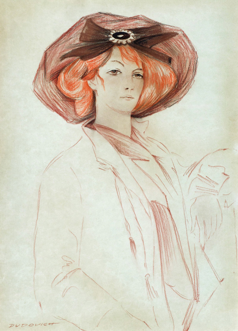 Marcello Dudovich Signora con cappello Tecnica mista su carta, cm. 67x49 Firmato in basso a sinistra.