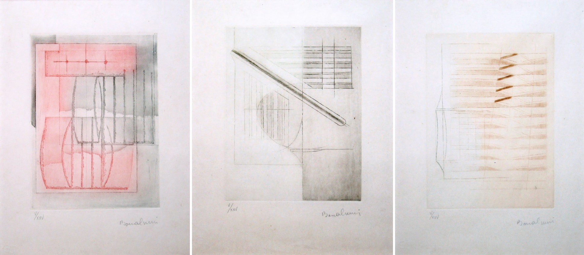 es. V/XXV, n. 3 acqueforti firmate dall'artista in basso a destra, opere incorniciate separatamente