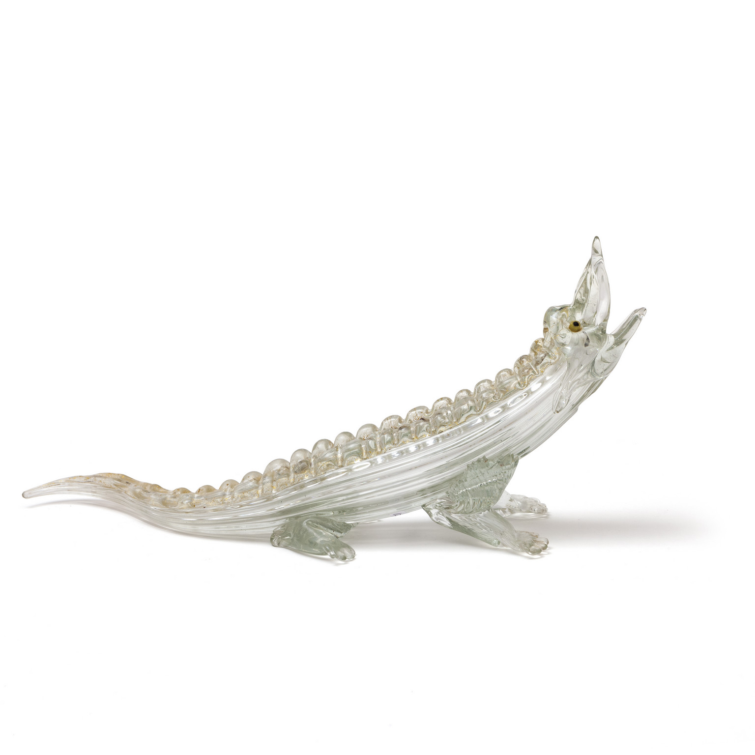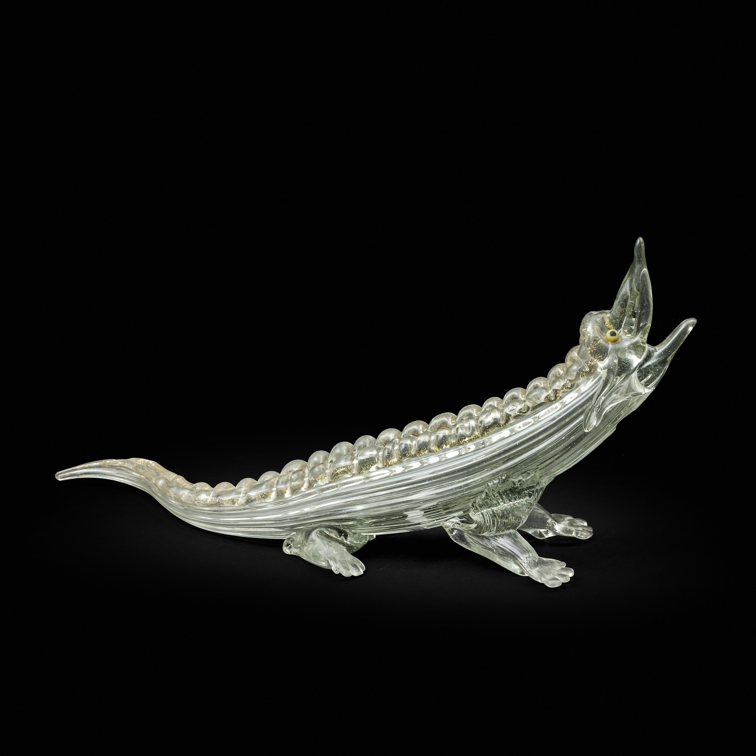 Figura di coccodrillo in cristallo iridato e foglia oro anni '30.