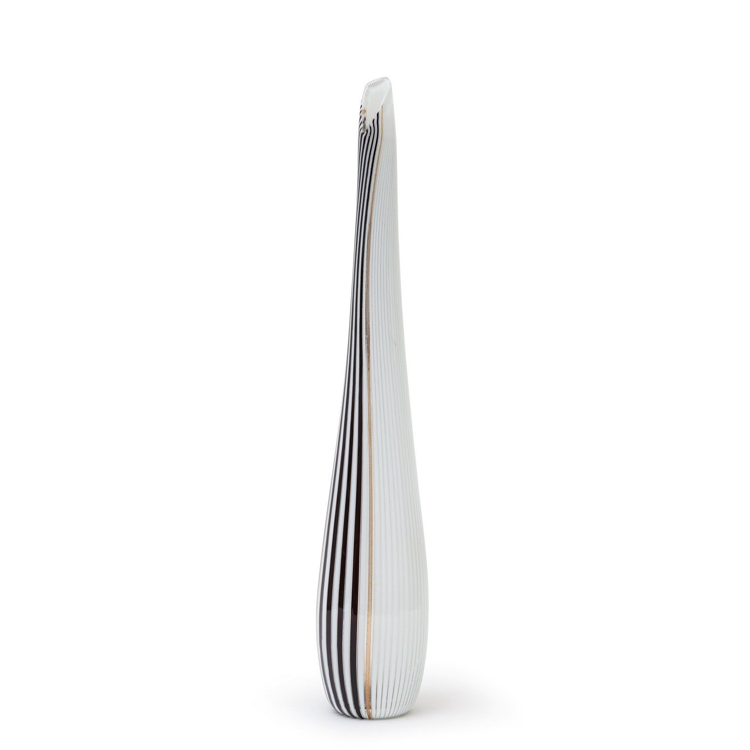 Un vaso a canne verticali lattimo nero e avventurina modello '5755' 1954.