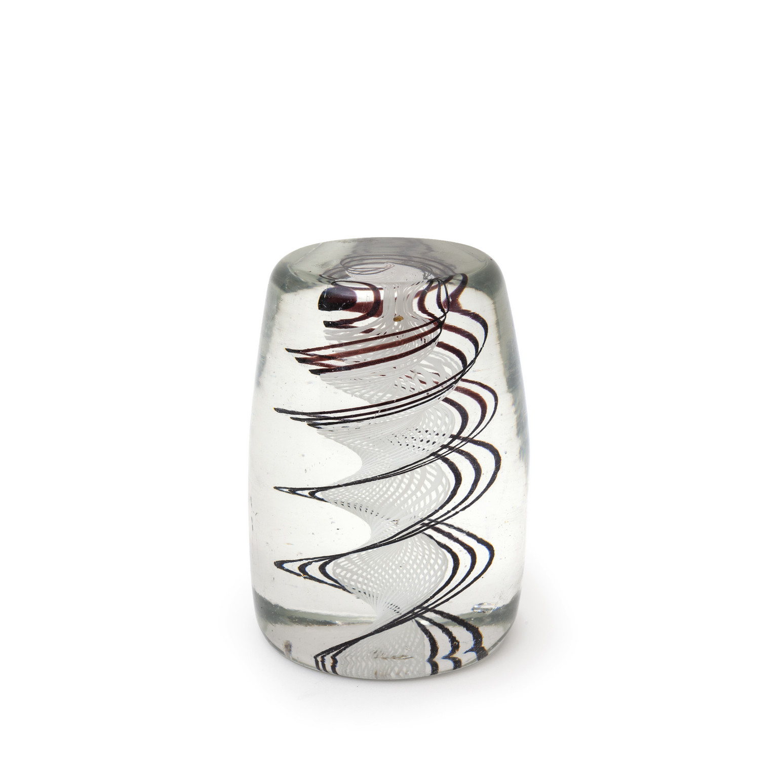 Un fermacarte troncoconico in vetro massiccio con zanfirico modello '4607' circa 1955.