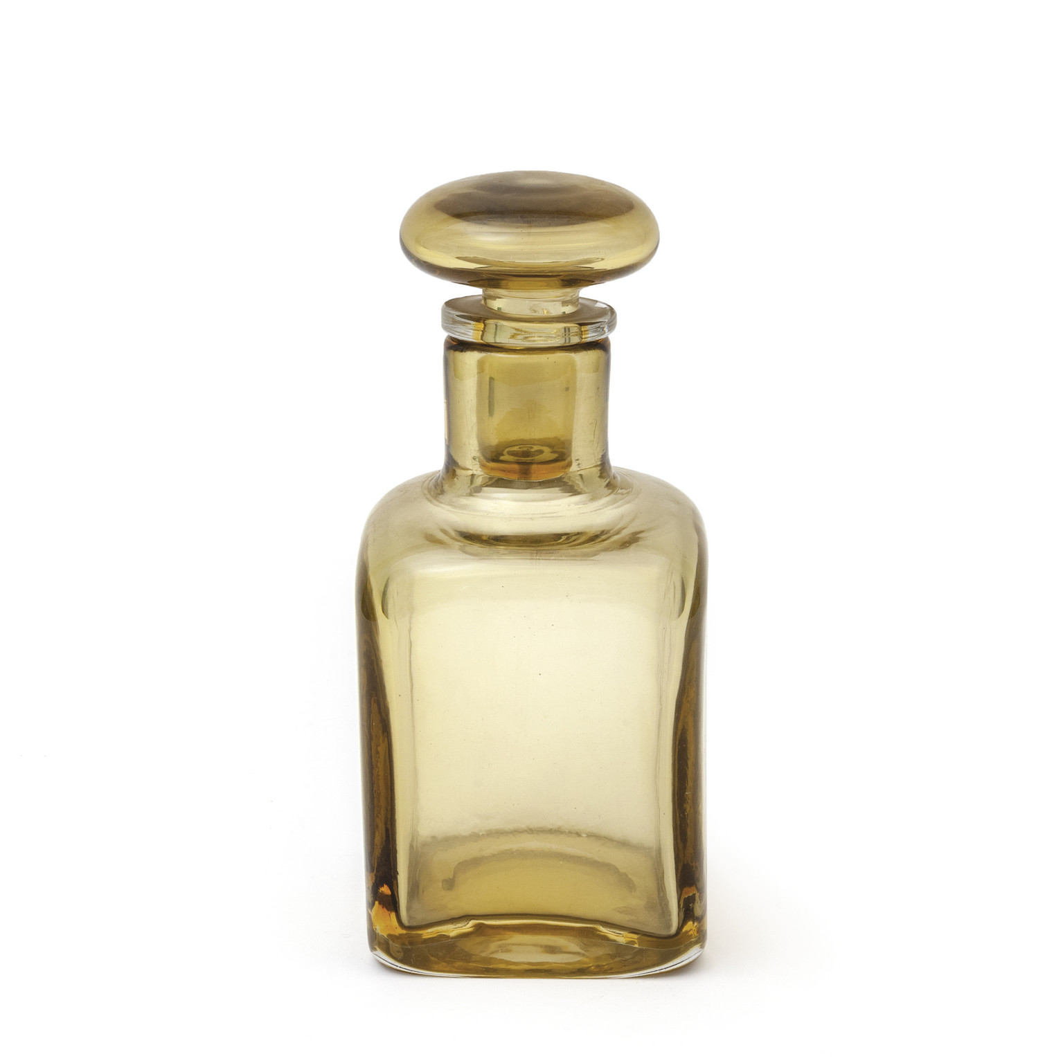 Una bottiglia a base quadrata in vetro trasparente ambra modello '3541' 1959.