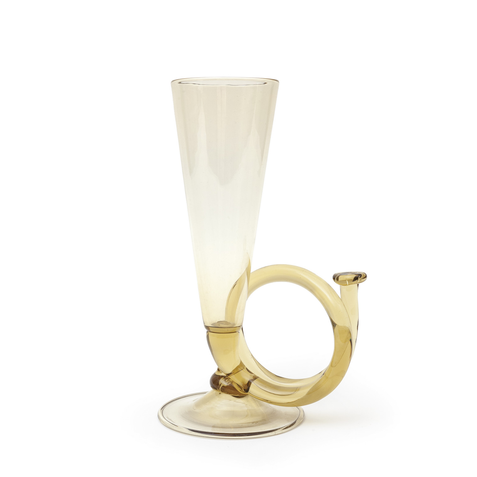 Un calice a tromba in vetro trasparente pagliesco circa 1948.