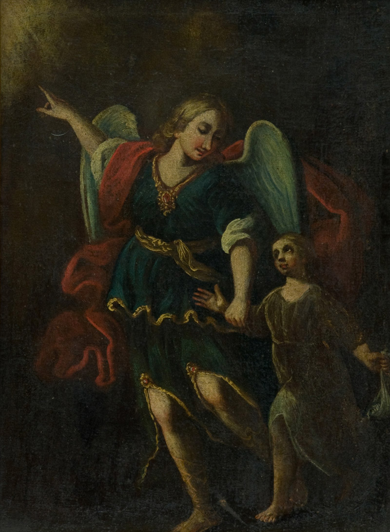 Anonimo del '700 Angelo custode Olio su tela, cm. 58x43